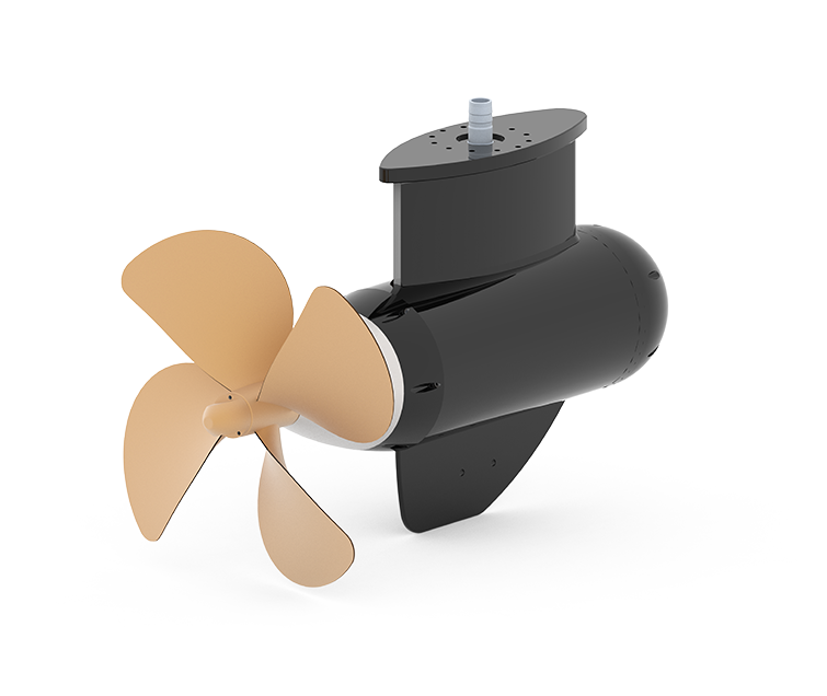 Electrically driven thrusters for workboats, canal cruisers, hydrofoils, and inland vessels.